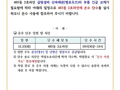 온수 단수 안내문