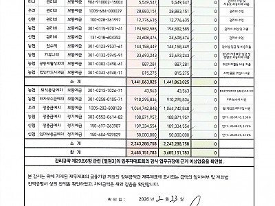 2026년 1월 금융기관 잔액 및 관계장부 대조 확인 결과 보고서