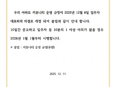 입주자대표회의 제12차 회의 결과 공고(임시)